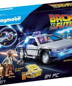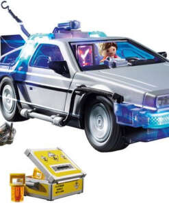 Nu este usor la 17 ani, iar adolescenta este o perioada mai complicata pentru tineri. Singura speranta din viata lui Marty McFly este prietenul sau profesor nebun Doc Brown, cu inventiile sale nebunesti. Doc tocmai a transformat un DeLorean intr-o masina a timpului ca Marty sa-l cunoasca. Inapoi in viitor DeLorean de la PLAYMOBIL calatoreste in timp intr-o masina sport si aterizeaza la mijlocul anilor 50. Aici isi intalneste parintii tineri si risca nu numai sa-i confunde viitorul, ci si intregul continuu spatiu-timp. Marea intrebare este: cum se intoarce in viitor? Intra si calatoreste in timp cu Marty in DeLorean si traieste aventuri fantastice. Setul de piese contine personajele cunoscute Marty McFly si Doc Brown din trilogia filmului cult din anii 80, Inapoi la viitor. Legendarul DeLorean DMC-12 este, desigur, echipat cu un recipient de plutoniu, compensator de flux si afisare de timp in tabloul de bord. Pentru a trece la modul de zbor, toate cele patru roti pot fi pliate cu 90 de grade iar usile se deschide in sus. Setul include 2 figurine, o masina DeLorean si multe alte accesorii. Varsta recomandata 5 ani+