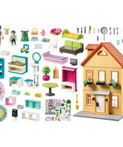 Bine ati venit la Casa de la oras de la PLAYMOBIL, nu doar extrem de confortabila si primitoare dar si moderna. Bucataria este foarte spatioasa si o regasiti la parter. Are o masa mare cu scaune ce este ideala pentru cinele in familie. Tata si fiul sau adora sa petreaca timpul impreuna uitandu-se la televizor. Dormitorul cel mare se afla la primul etaj, acolo unde este si baia. Tot aici mamica isi are garderoba unde pastreaza toate hainutele si accesoriile la moda. Teritoriul copiilor se afla in podul casei. Acestia au un patut, un birou si multe sertare unde isi tin jucariile. Tot ceea ce ai nevoie o sa gasesti in casa de la oras.