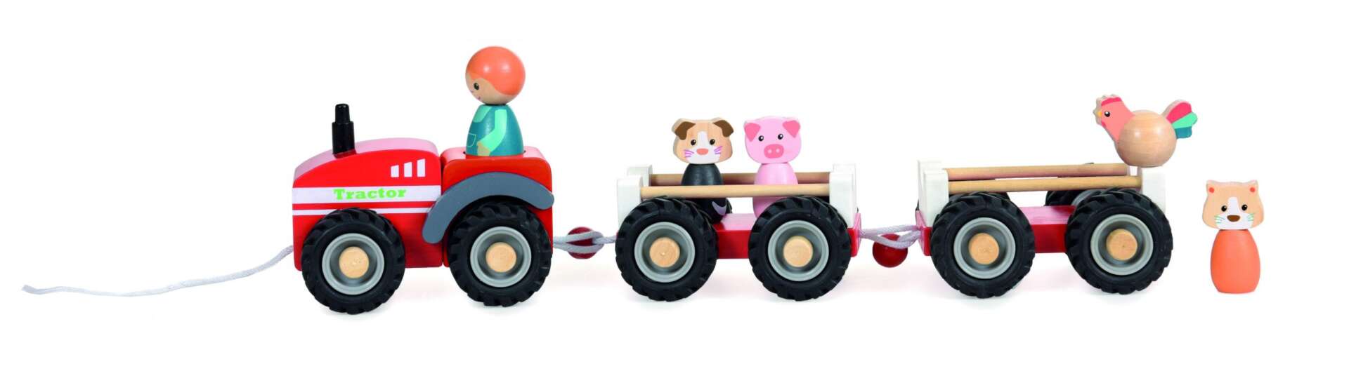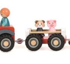 Acum copilul tau se poate juca ca un adevarat fermier gospodar! Are un tractor care poate cara orice in ferma, are animatule prietenoase si un fermier harnic. Tractor cu 2 remorci, 5 fugurine- piese confectionate din lemn. Rotile tractorului sunt din cauciuc. Confectionate cu vopsele non-toxice, conform reglementarilor EN71&ASTM. AVERTISMENT: Contraindicat copiilor sub 3 ani, contine piese mici, pericol de sufocare. A se utiliza sub directa supraveghere a unui adult. Producator: Egmont toys, Belgia