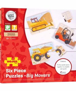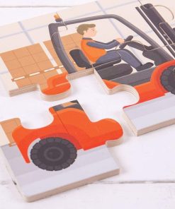 Etichete: 691621198179, BIGJIGS Toys, BJ817, Set 3 puzzle din lemn - Vehicule pentru constructii